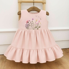 Vestido encantador, confeccionado com tecido 100% algodão e bordado manual exclusivo, trazendo um toque artesanal e poético para os momentos especiais da sua pequena. O modelo com babado na barra e caimento leve une charme e conforto na medida certa, permitindo liberdade de movimento com delicadeza.
